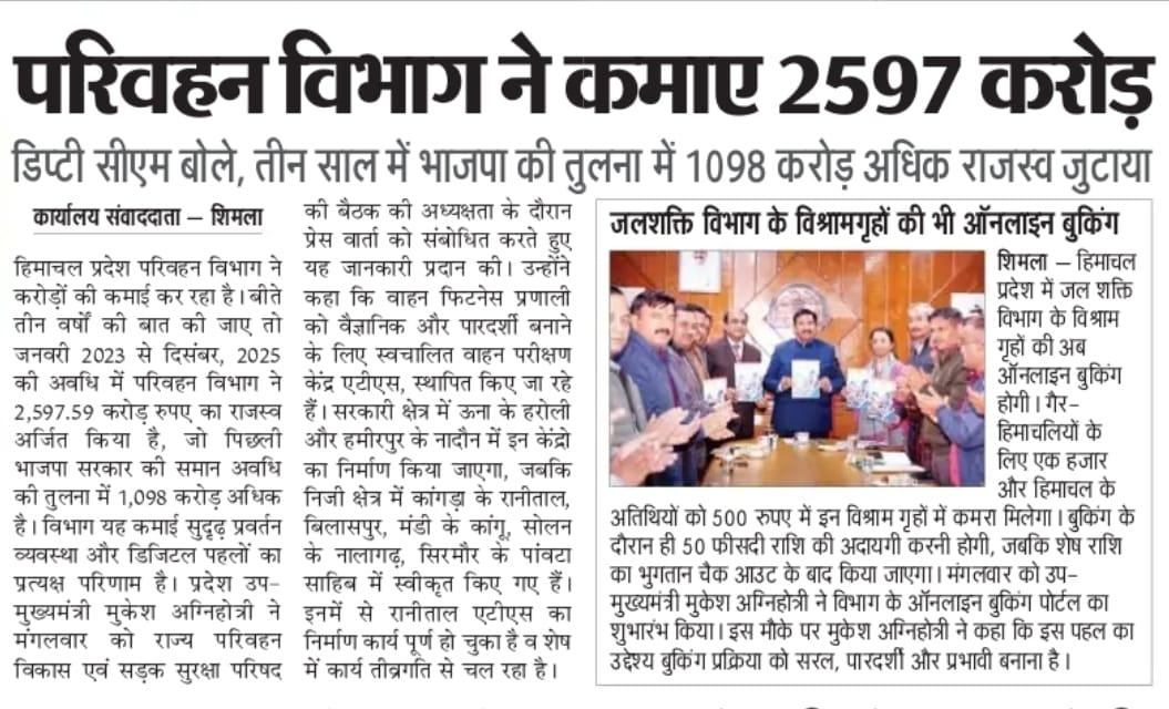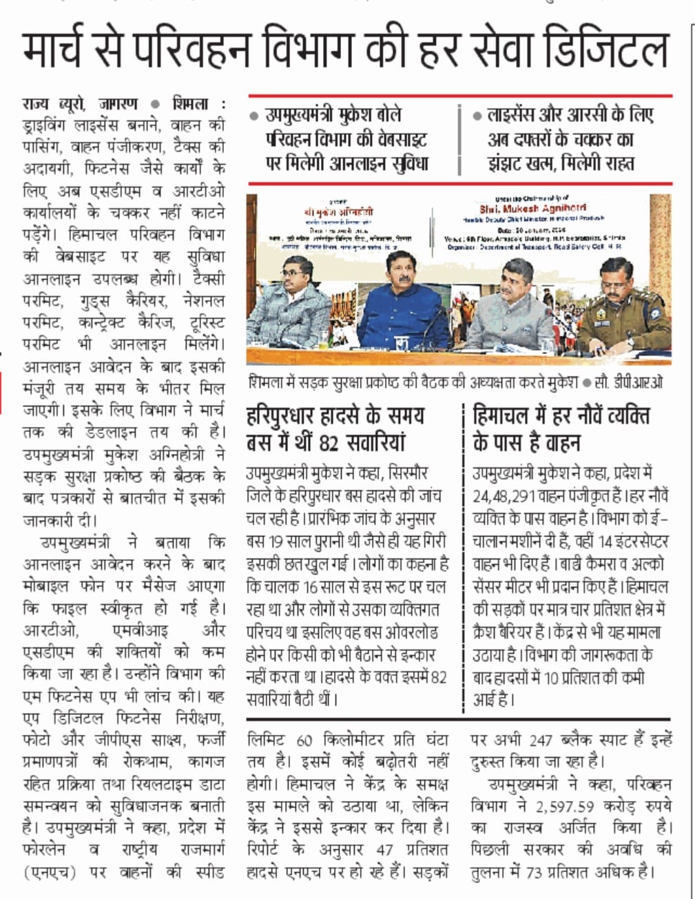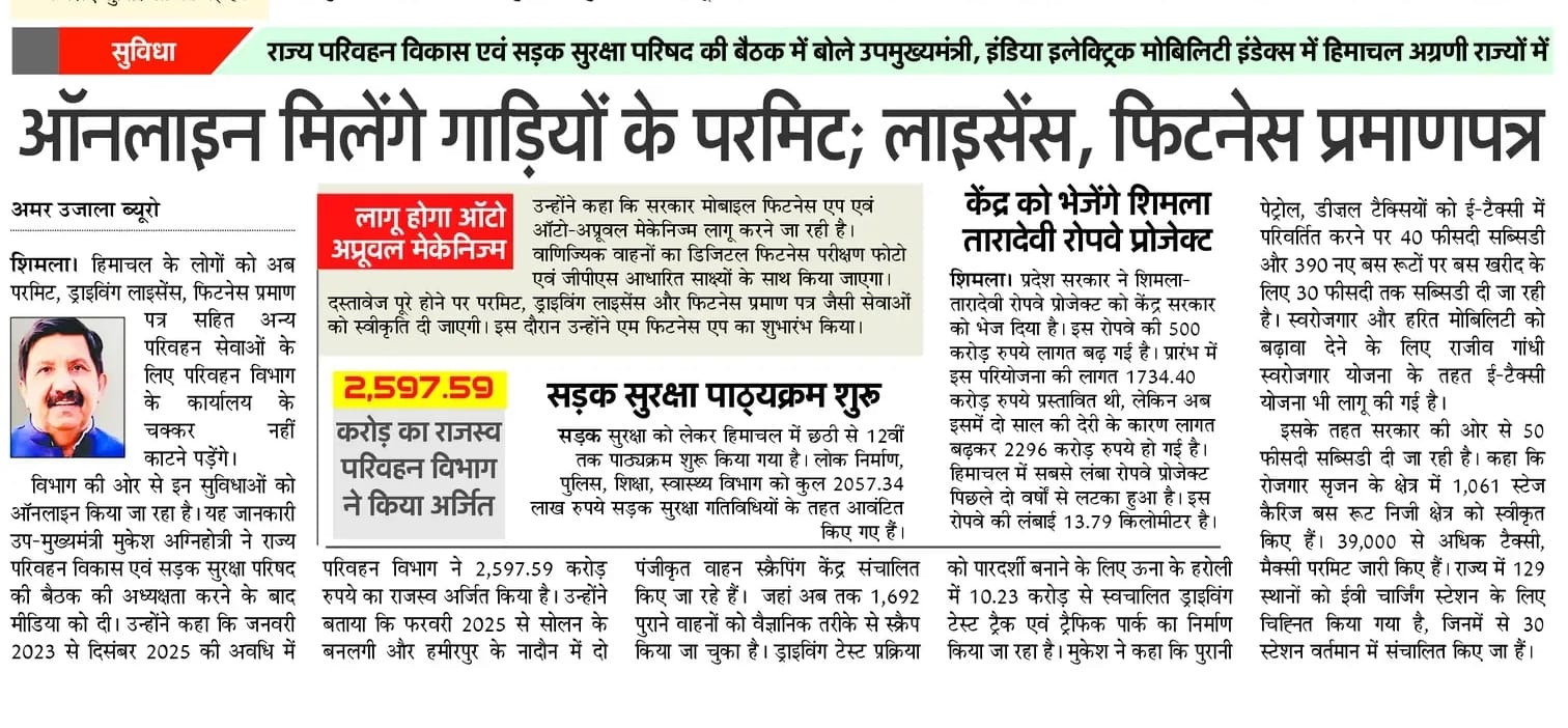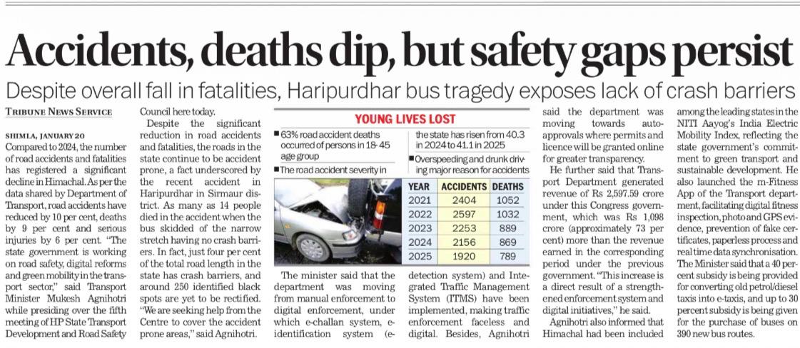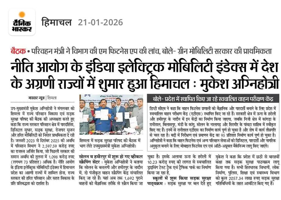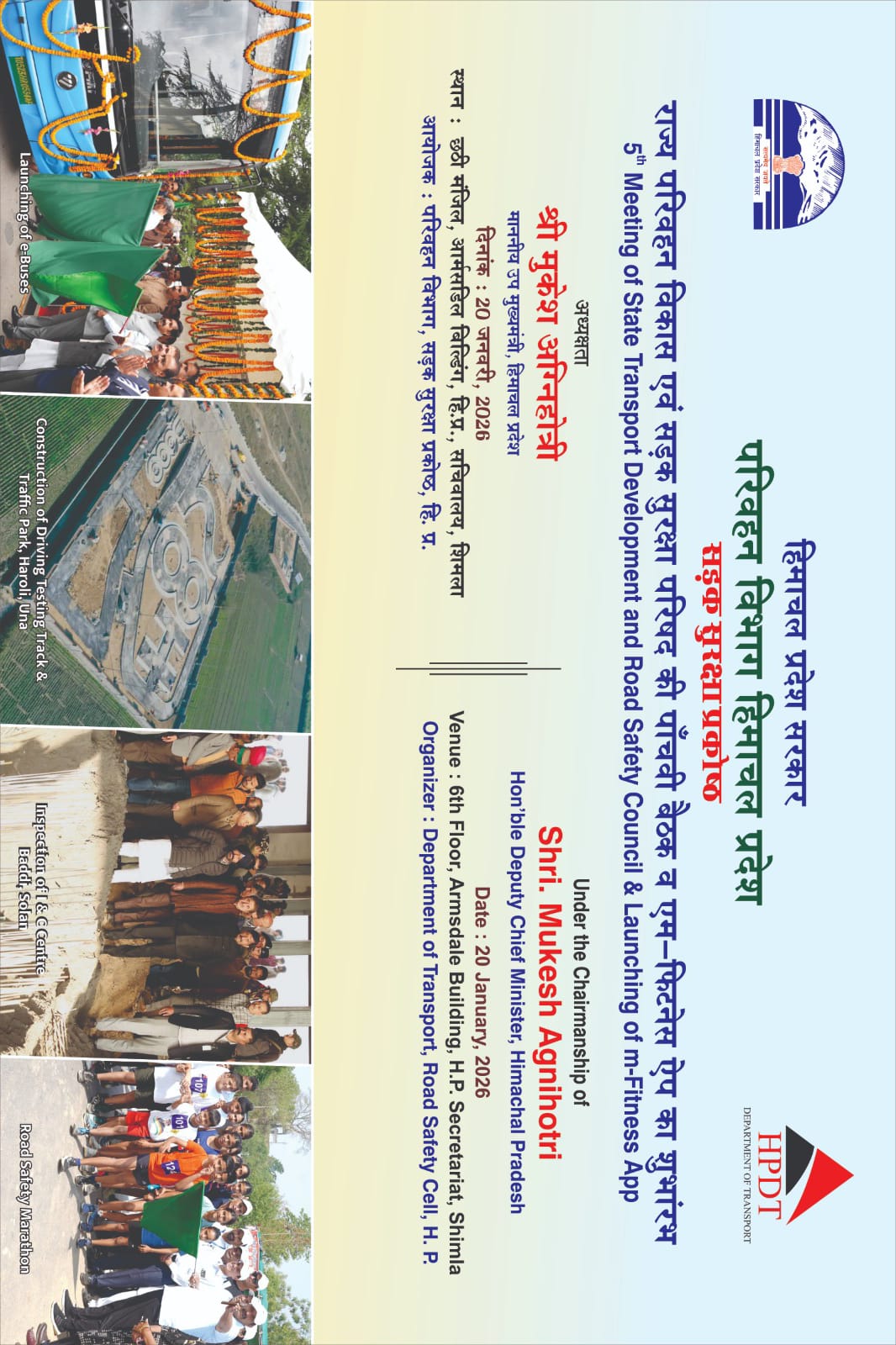 To review the Road Safety Situation in the State, the 5th Meeting of H.P. State Transport Development and Road Safety Council was held under the Chairmanship of Sh. Mukesh Agnihotri, Dy. Chief Minister, H.P. on 20th January, 2026.